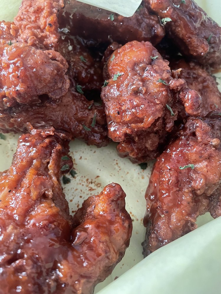 5 crispy, succulent Bae wings. Your choice of regular crispy, mango habenero, BBQ, honey Sriracha, teriyaki honey mustard, or lemon pepper. Served with fries.